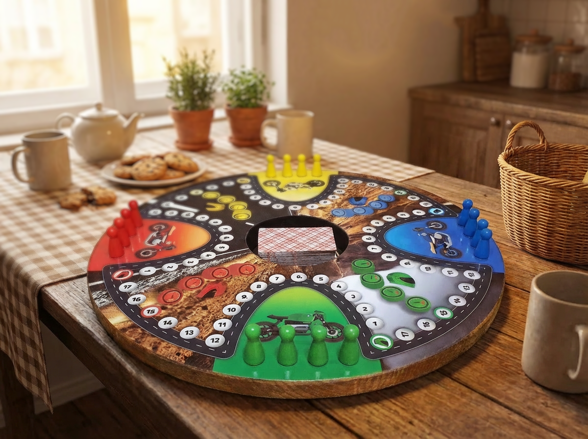 - 1 plateau de jeu rond en bois massif, personnalisé avec les illustrations de votre choix